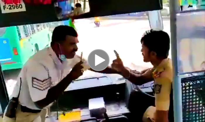 WATCH: BMTC DRIVER FIGHT WITH POLICE IN BENGALURU